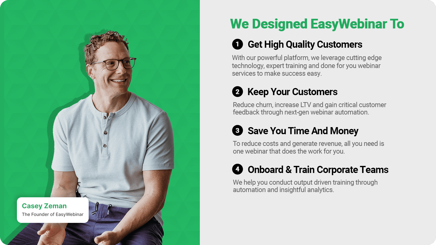 Great Investment!! With EasyWebinar I'm able to bring a visual experience to my school/courses. I offer trainings, coaching, and I sell through the power of webinars. I've made over $50k in sales using EasyWebinar as my method of promotion.